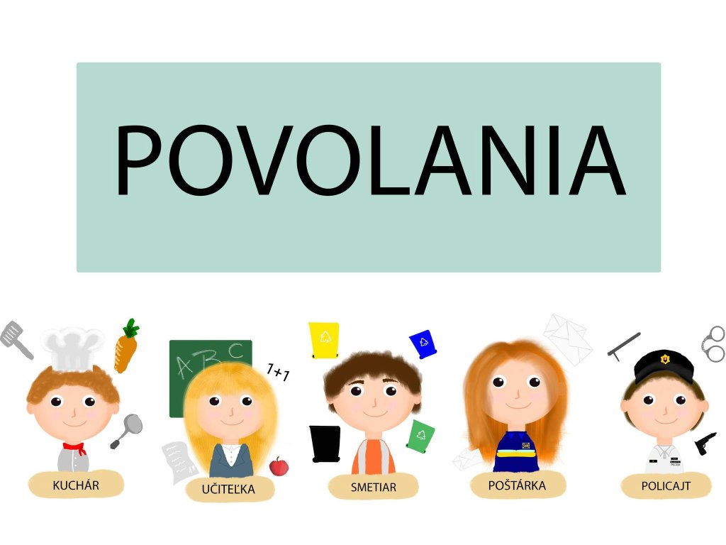 (UČITEĽKA,DOKTORKA,PROGRAMÁTOR,KUCHÁR,MECHANIK,POLICAJT,SMETIAR,VOJAK,HASIČ,POŠTÁRKA,PREDAVAČKA,STAVBÁR)